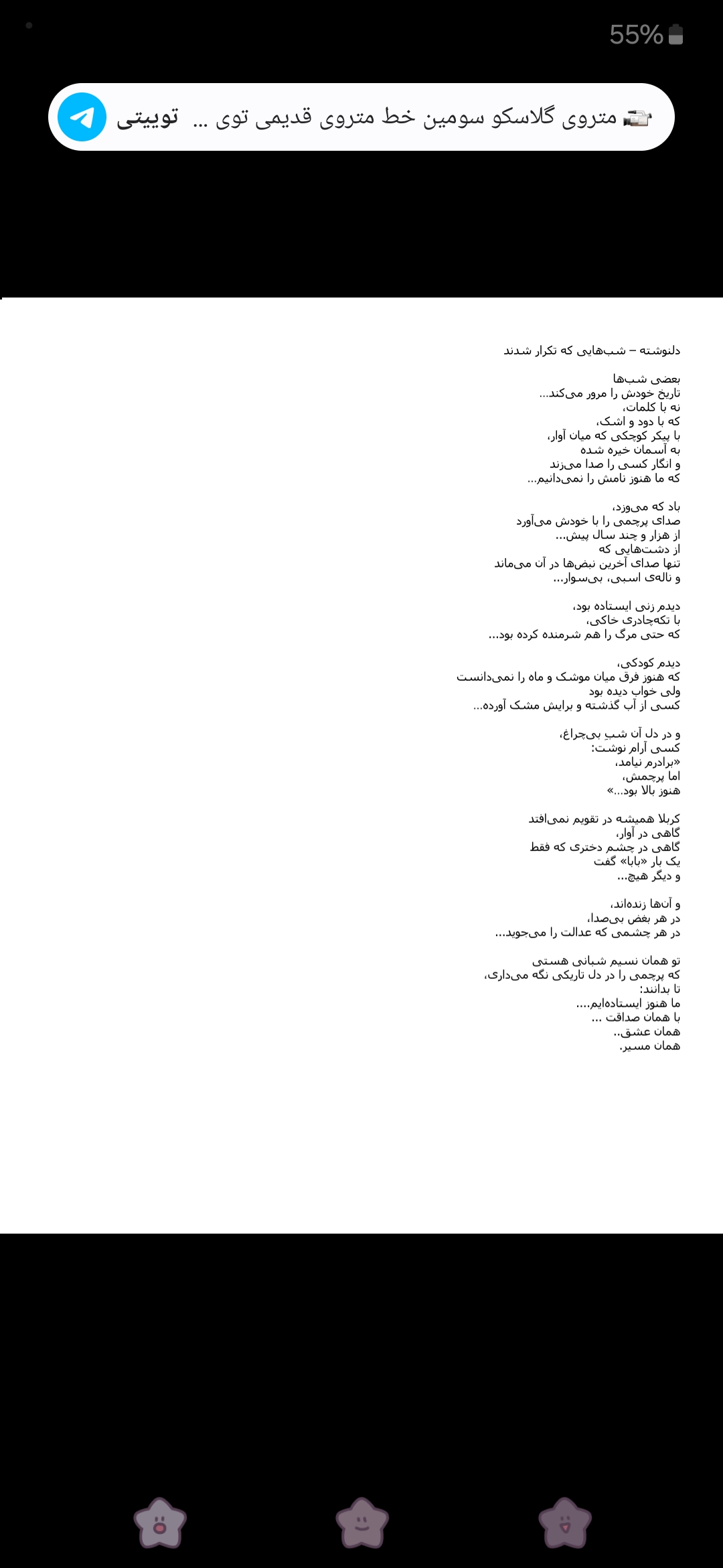 این دلنوشته، تلاشی است برای روایت شب‌هایی که تاریخ در آن‌ها دوباره زنده می‌شود؛ شب‌هایی که کربلا تنها یک واقعه در تقویم نیست، بلکه زخمی ماندگار بر روح انسان است. این سطرها از کودکانی می‌گویند که فرق میان موشک و ماه را نمی‌دانند، اما رویای مشک و آب را در دل دارند؛ از زنانی که حتی مرگ را شرمنده استقامتشان می‌کند؛ از پرچمی که در سخت‌ترین تاریکی‌ها هنوز افراشته است.