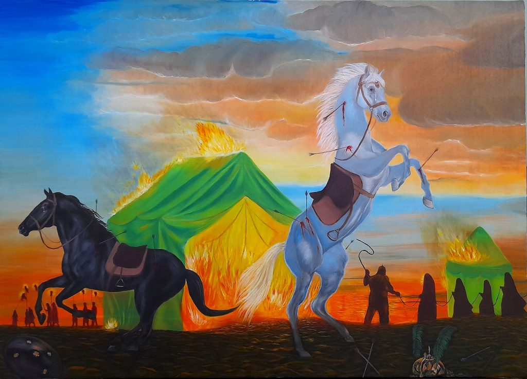 عنوان اثر : غروب عاشورا ابعاد : 70×50 سانتی متر تکنیک : رنگ روغن روی بوم
